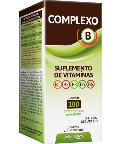 SUPLEMENTO ALIMENTAR EM COMPRIMIDOS Vitaminas B1, B2, B3, B5 e B6 INGREDIENTES: Niacinamida (Niacina), D-Pantotenato de Cálcio (Ácido Pantotênico), Cloridrato de Piridoxina (Vitamina B6), Tiamina Mononitrato (Vitamina B1), Riboflavina (Vitamina B2), agentes de massa: Celulose Microcristalina (INS 460i), glaceantes: Hidroxipropilmetilcelulose (INS 464), Etilcelulose (INS 462), Polietileno glicol (INS 1521), umectante: Triacetina (INS 1518), estabilizante: Croscarmelose Sódica (INS 468), antiumectante: Dióxido de Silício (INS 551), antiaglutinante: Estearato de Magnésio (INS 470iii), corantes: Óxido de Ferro Preto (INS 172i), Óxido de Ferro Amarelo (INS 172iii), Dióxido de Titânio (INS 171), Óxido de Ferro Vermelho (INS 172ii),). NÃO CONTÉM GLÚTEN. NÃO CONTÉM AÇÚCARES.