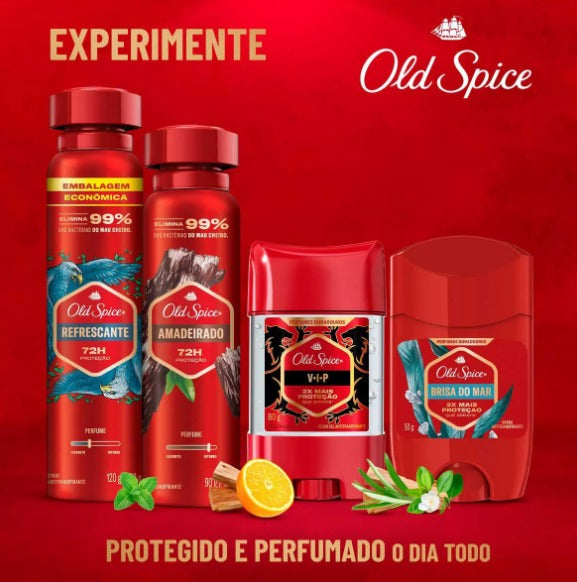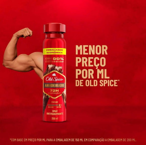 Old Spice Amadeirado é um desodorante desenvolvido especialmente para homens que sofrem com transpiração excessiva e desconfortável. Com apenas uma aplicação, mantém as axilas livres do suor e do mau odor por até 48 horas, sem ressecar ou irritar a pele.