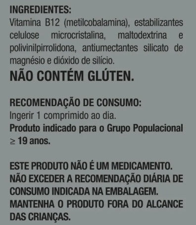 Este suplemento contém a quantidade ideal de Vitamina B12 para auxiliar nas funções metabólicas do corpo e no fortalecimento do sistema imunológico.