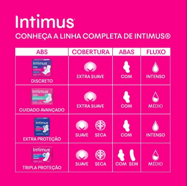 A Intimus pode te ajudar a deixar a sua zona íntima mais seca e protegida! O Absorvente Tripla Proteção conta com Center Block, ajudando na absorção instantânea do seu fluxo. Sem contar que ainda absorve 2 vezes mais rápido e distribui por todo absorvente, prevenindo vazamentos. Perfeito para que você se sinta seca enquanto usa. E aí? Que tal conferir e comprovar? O Absorvente Intimus Tripla Proteção tem controle de odores, é dermatologicamente testado e tem 100% de materiais respiráveis.
