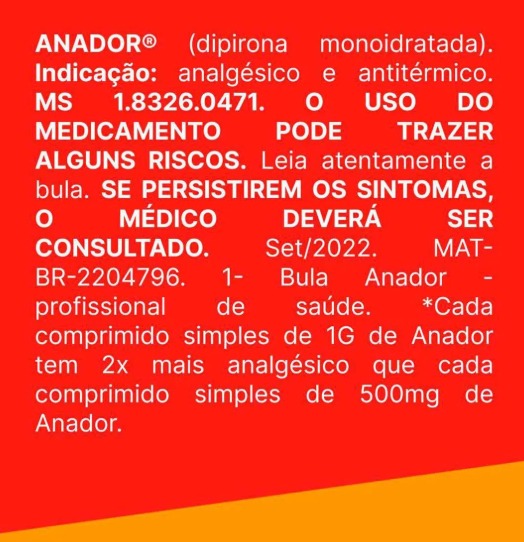 Não há estudos dos efeitos de ANADOR comprimidos administrada por vias não recomendadas. Portanto, por segurança e para garantir a eficácia deste