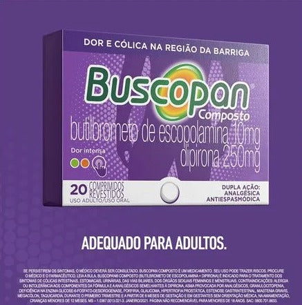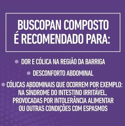 Descrição Analgésico e Antiespasmódico Buscopan Composto 10mg + 250mg 20 Comprimidos Revestido