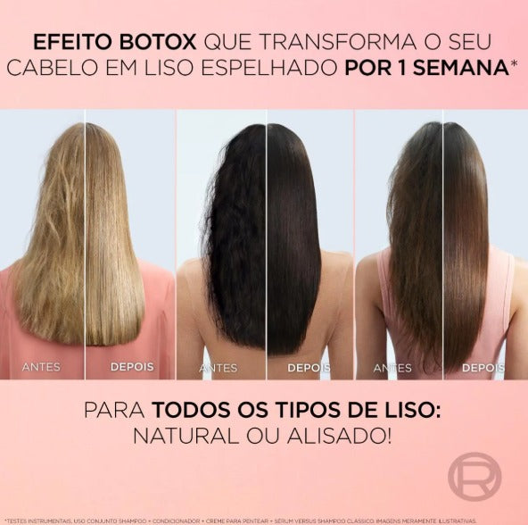 Para melhores resultados, utilize a linha completa de Elseve Liso dos Sonhos.