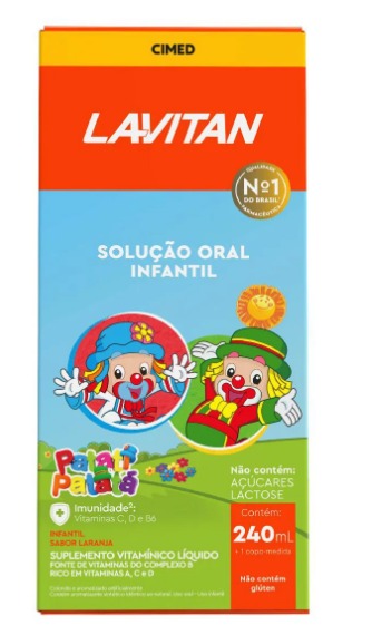 Sem adição de açúcar e zero lactose, o Suplemento Vitamínico Lavitan Kids está disponível em solução oral sabor laranja.