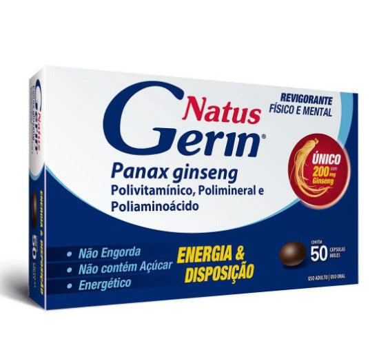 Natus Gerin é uma associação de vitaminas, minerais, aminoácidos essenciais e extrato de Panax ginseng. Esta associação é indicada para combater os sintomas causados pela fadiga, cansaço e exaustão. Também é indicado em estados carenciais, ou seja, quando o organismo necessita de uma suplementação de vitaminas e minerais.